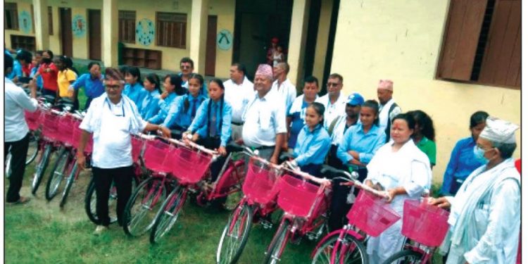 प्रदेश २ सरकारको ‘मुख्यमन्त्री बेटी पढाउ, बेटी बचाउ’ अभियान अन्तर्गत सर्लाहीको छात्राहरुलाई साईकल वितरण