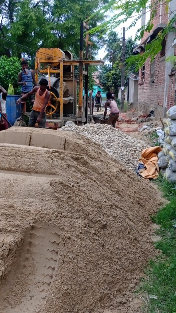 धनुषाको लक्ष्मीनियाँ गा.पा.७ स्थित दुर्गा टोलमा सडक ढलान कार्य जारी दृश्य ।