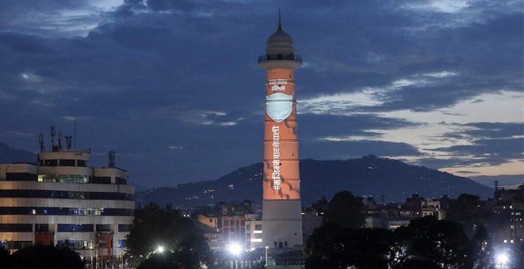 जानकी खबर ।२३ साउन,जनकपुरधाम । आजदेखि देशभर सुरु भएको मास्क अभियान मनाउन नवनिर्मित धरहरामा चेतनामूलक नारालाई शनिबार बेलुका प्रोजेक्सन म्यापिङबाट देखाइँदै । प्रधानमन्त्री शेरबहादुर देउवाले भिडिओ सन्देश जारी गर्दै कोरोनाको तेस्रो लहर आउने संकेत देखिएकाले मास्कको उचित प्रयोग हुनुपर्ने बताएका छन् ।