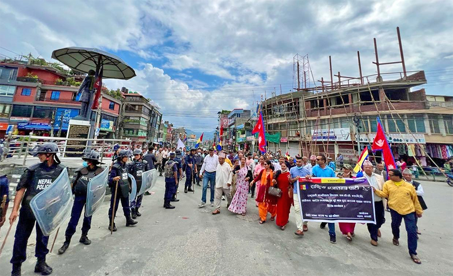 राष्ट्रिय प्रजातन्त्र पार्टीले संघीयता खारेजीको माग गर्दै पोखरामा गरे प्रदर्शन