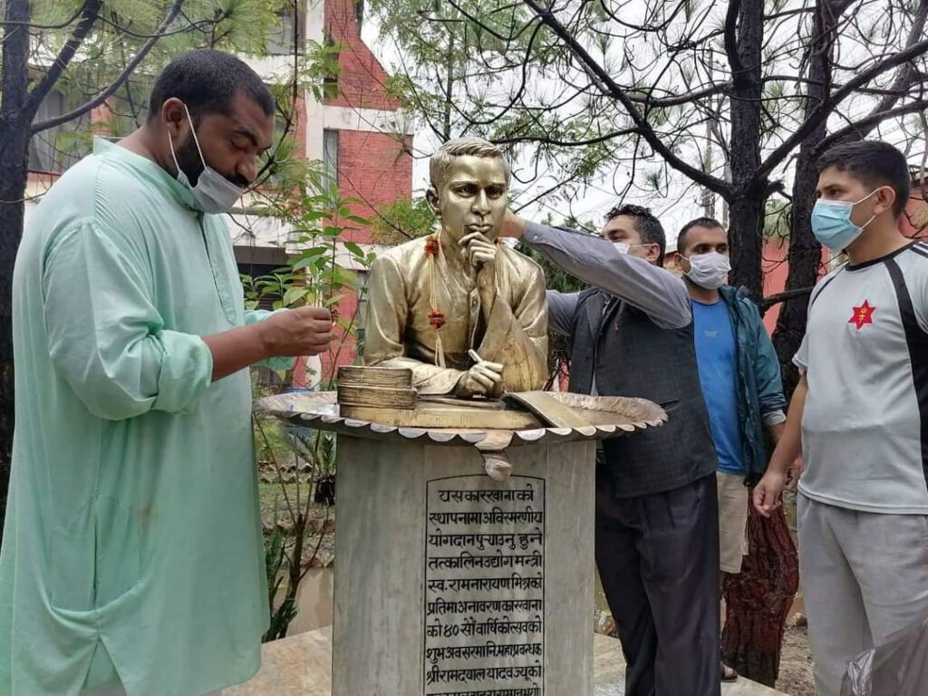 रहेको तत्कालिन जनकपुर चुरोट कारखाना लिमिटेडका संस्थापन स्व. रामनारायण मिश्रको शालिक सरसफाई गरिएको छ ।