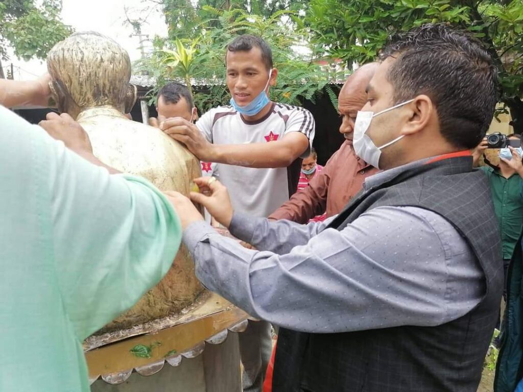 प्रदेश २ प्रमुख डा. राजेश अहिराजले नेपाली सेनाका जवान र केहि शुभेच्छुकहरुको सहयोगमा शालिकको सरसफाई गर्न लगाएका छन् ।