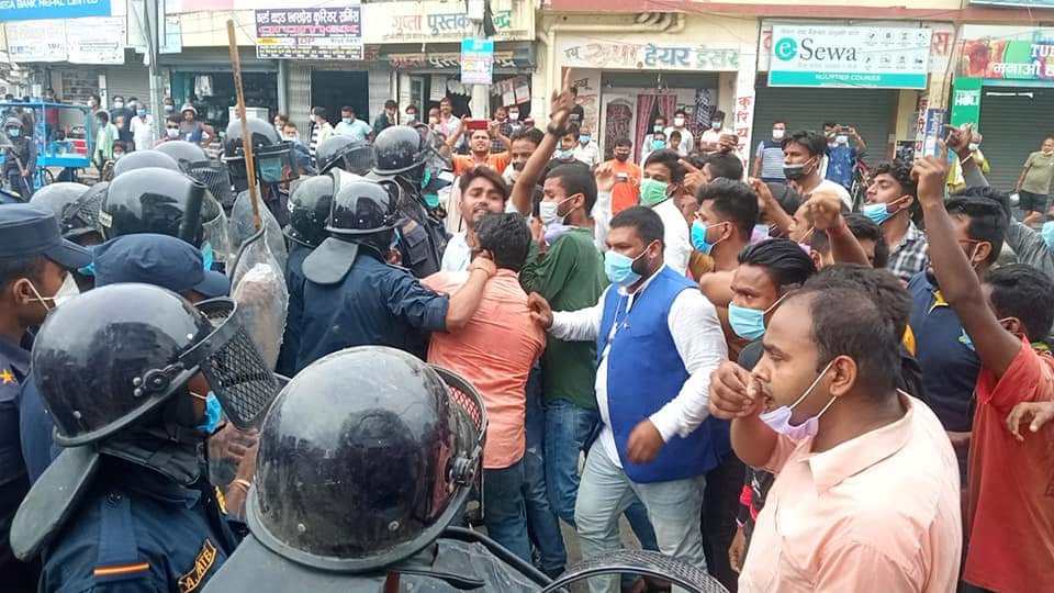 जनकपुरधाममा प्रधानमन्त्री केपि ओलिको संसद् विघटन विरुद्धको प्रदर्शनको प्रतिकारमा २ पक्षका युवाहरु बीच तनाव सिर्जना भएको छ ।