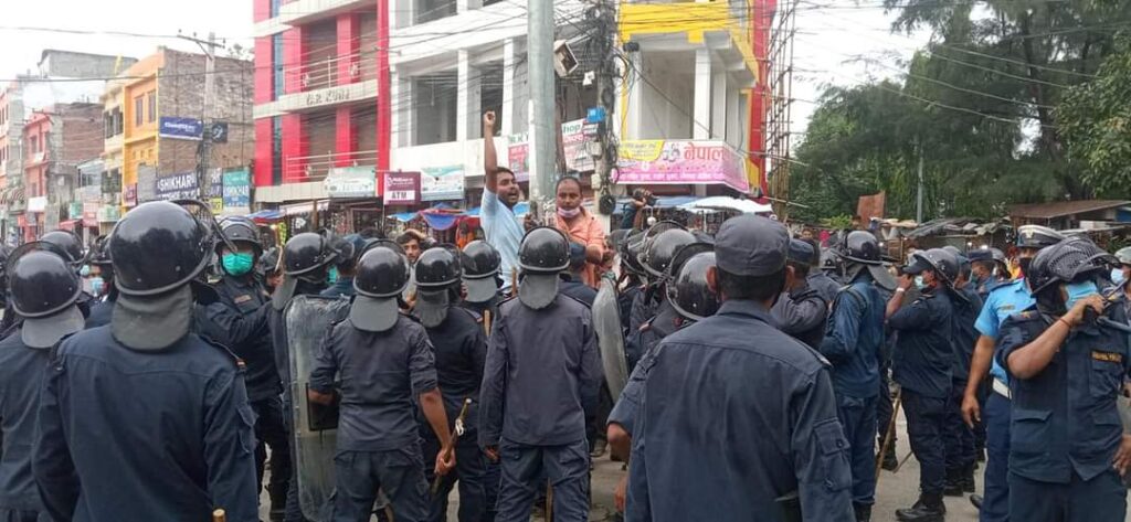 जनकपुरधामको रेल्वे स्टेसनबाट निस्केको जुलुसले प्रदर्शन गरिरहँदा प्रधानमन्त्री ओली र राष्ट्रपति भण्डारीविरुद्ध नाराबाजी गरेका क्रममा नेकपा एमालेको ओलीनिकट राष्ट्रिय युवा धनुषाले विद्यार्थीहरुले गरेको प्रदर्शनको प्रतिकारमा उत्रेका थिए ।