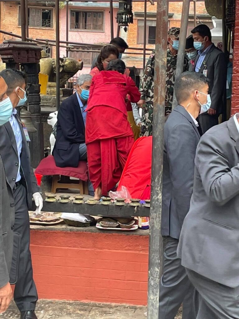पत्नी आरजुसहित कुम्भेश्वर पुगेका प्रधानमन्त्री शेरबहादुर देउवाले शुक्रबार जिर्णोद्धारको अनावरण गरे ।
