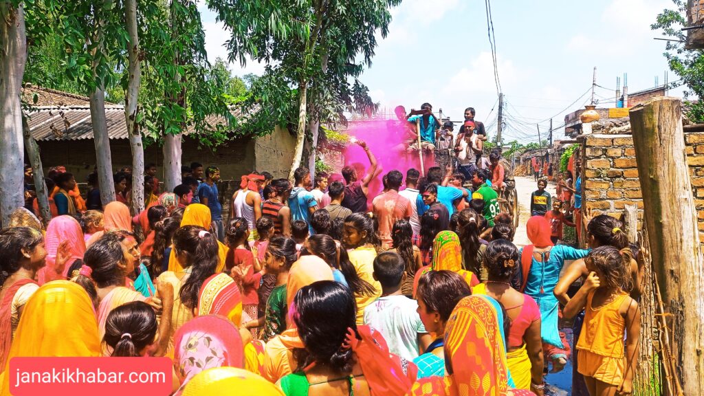 बिहिवार स्थानीयहरुले नाच गान गर्दै भगवान रधा-कृष्णको मुर्ति सहित अन्य विभिन्न देवि देवताका मुर्तिहरु गाडीमा राखी नगरको परिक्रमा गरेका थिए ।