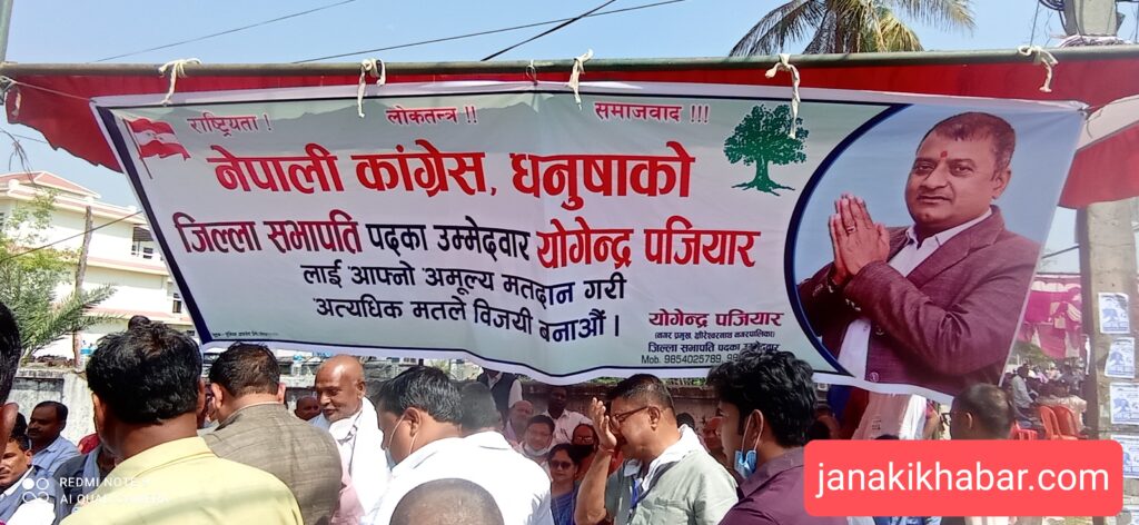 फागुन२७,जनकपुरधाम ।नेपाली कांग्रेस धनुषा १४ अैाँ जिल्ला आधिवेशन,निर्वाचन जनकपुरधाममा हुदै ,भोटिङ ४ बजे सम्म हुने ।