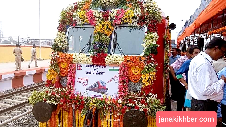 नेपालका प्रधानमन्त्री शेरबहादुर देउवा र भारतीय प्रधानमन्त्री नरेन्द्र मोदीले संयुक्त रुपमा हरियो झण्डा देखाएपछि आज जयनगरबाट रेल कुर्थाका लागि प्रस्थान गरेको छ ।