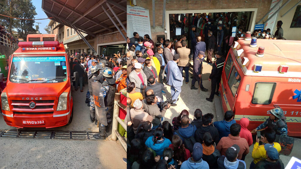 कीर्तिपुर अस्पतालबाट एम्बुलेन्समा राखेर उनलाई विमानस्थल लगिँदै छ ।