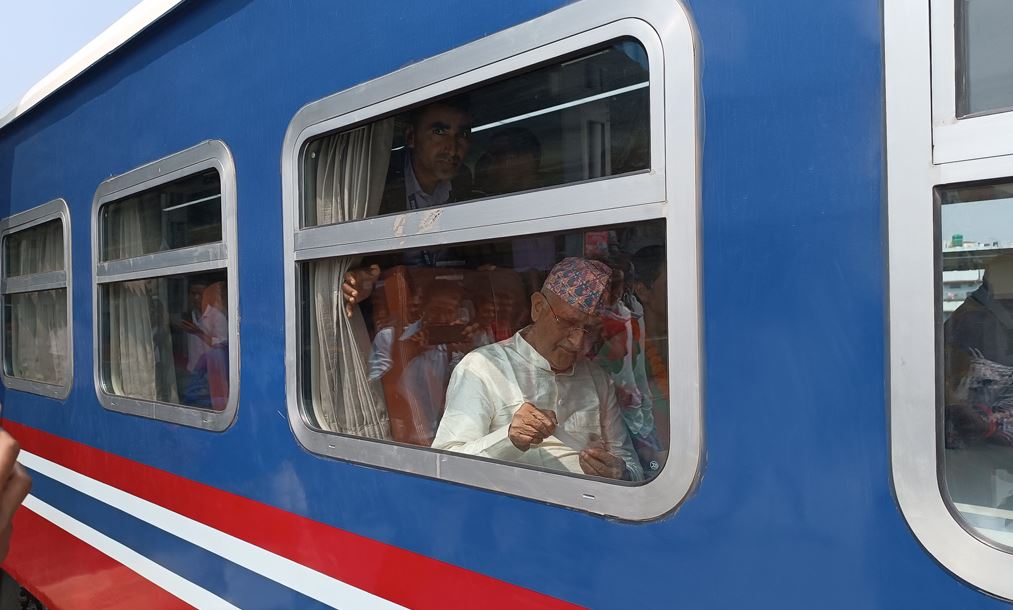 ८ असोज, जनकपुरधाम । विभिन्न कारिक्रममा सहभागी हुने क्रममा नेकपा एमाले अध्यक्ष केपी शर्मा ओली जनकपुर- जयनगर रेल चढेका छन् ।शनिबार पार्टी प्रवेश कार्यक्रमको लागि जनकपुर आएका ओली रेल चढेर धनुषाको विदेह नगरपालिका तीनकौरिया पुगेका हुन् ।उनलाई पर्खिँदा जनकपुर- जयनगर रेल निर्धारित समयभन्दा एक घण्टा ढिलो जनकपुरबाट जयनगरबाट गुडेको हो । पार्टी प्रवेश कार्यक्रम स्थल […]