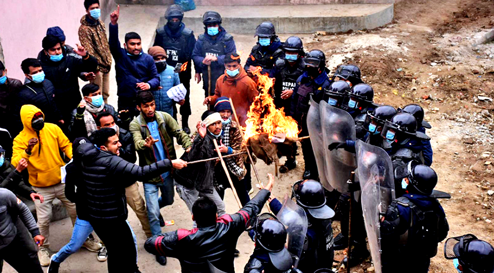 पेट्रोलियम पदार्थको मूल्यवृद्धिको विरोधमा आक्रोशित विद्यार्थीले जलाए प्रधानमन्त्रीको पुत्ला